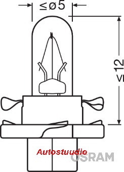 OSRAM BAX pirn 12V 1,2W BX8,4D Must, 10tk